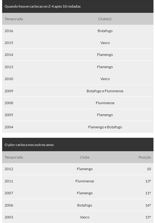 Nos últimos 15 anos, em pelo menos nove ocasiões, os representantes do Rio de Janeiro estiveram na luta contra a degola no campeonato após dez rodadas.
