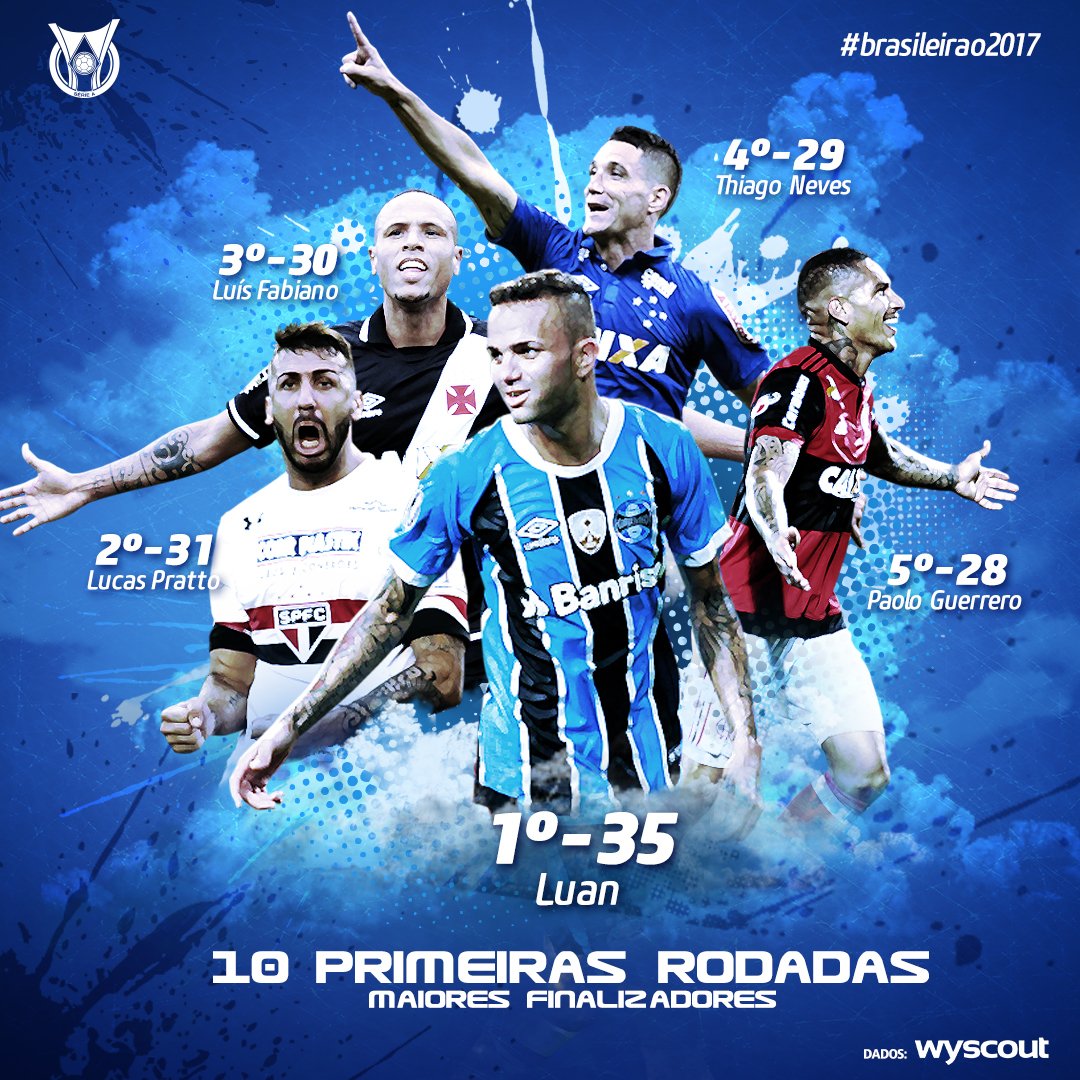 Com 10 rodadas do #Brasileirão2017, estes são os maiores finalizadores da competição! #BR2017