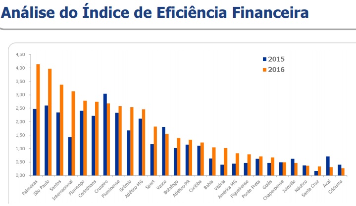 O estudo considerou o Palmeiras como o time mais eficaz em seus gastos ao longo do ano 2016, principalmente por conta do título brasileiro, que veio após alto investimento.