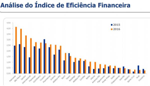 O Itaú aproveitou, também, para comparar Palmeiras, Inter e São Paulo. O banco citou que o time alviverde aumentou gastos pelo aumento efetivo nas conquistas, enquanto o efeito de tricolores e colorados foi mais pelo mal desempenho em campo, com menos pontos conquistados e custos elevados com relação a 2015.