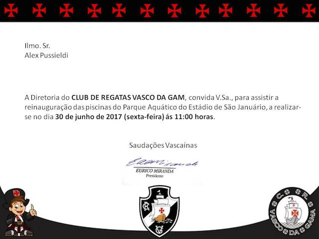 Veja o convite para a reinauguração das piscinas do Vasco