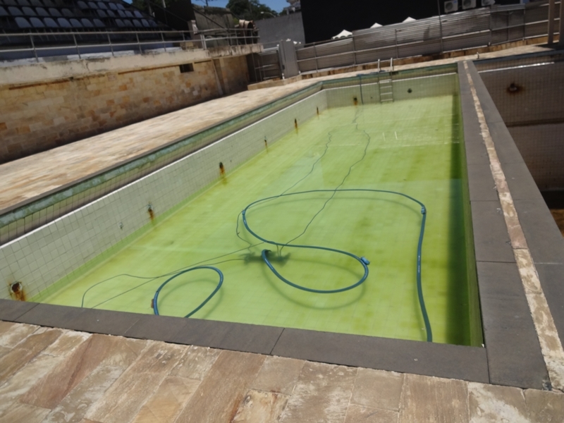 Na gestão anterior, a estrutura do Parque Aquático do clube foi abandonada, levando ao processo de degração do ambiente. Veja abaixo: