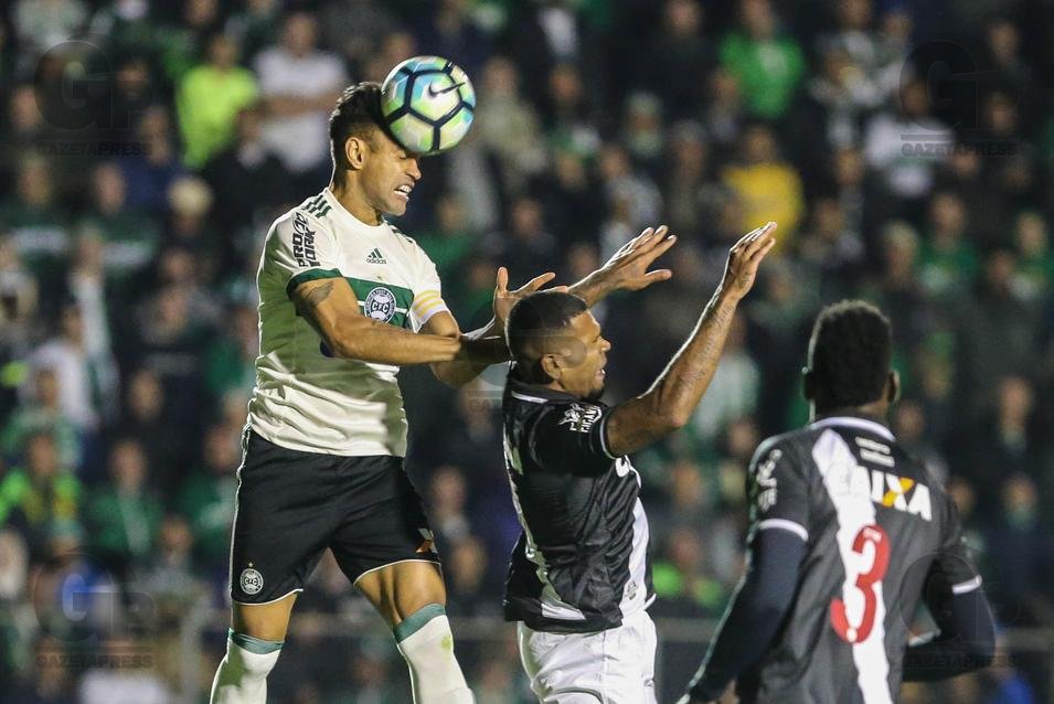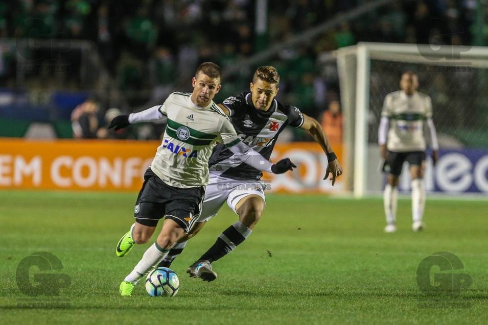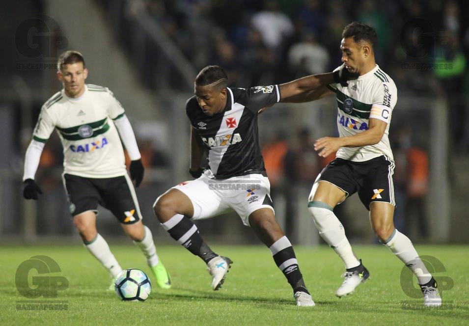Em jogo fraco no primeiro tempo e muito movimentado na etapa final, Coritiba e Vasco empataram por 2 a 2 em partida disputada na noite deste domingo, na Vila Capanema, em Curitiba. O time carioca saiu na frente com Thalles, o Coxa virou com dois gols marcados por Kleber e o Vasco voltou a deixar tudo igual com Wagner. O resultado fez o Coritiba manter a invencibilidade em casa, enquanto o Vasco segue sem vencer como visitante. Com o ponto conquistado, o a equipe paranaense chegou aos 16 pontos na oitava colocação. O time de São Januário tem a mesma pontuação, mas está na sexta posição.