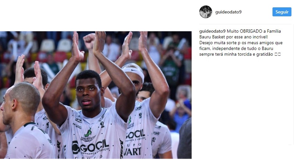 – Muito obrigado à família Bauru Basket por esse ano incrível! Desejo muita sorte p os meus amigos que ficam, independente de tudo o Bauru sempre terá minha torcida e gratidão – publicou o jogador.