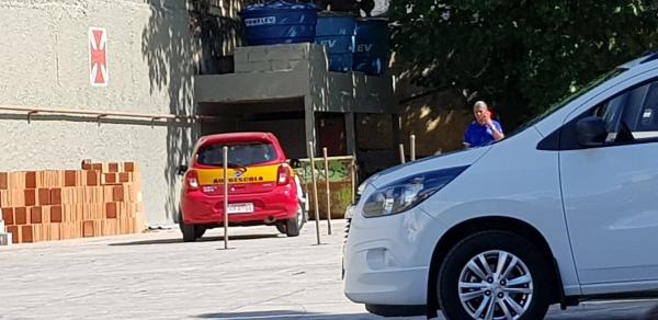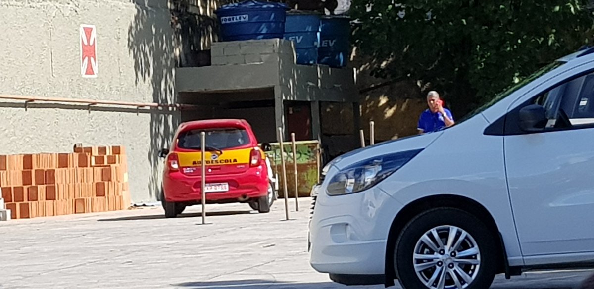 Motorista em carro de autoescola treina baliza no estacionamento de São Januário; veja foto
