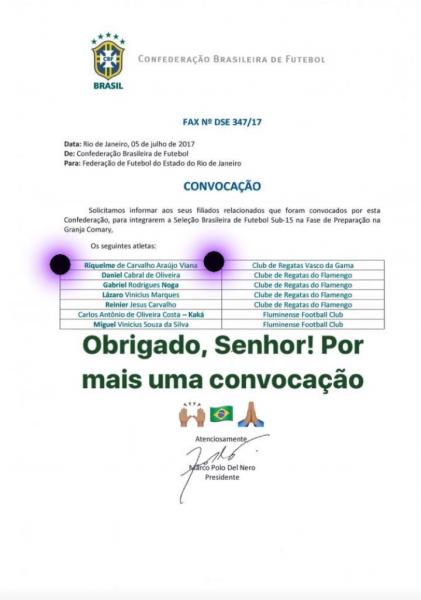 Riquelme é convocado para a Seleção Brasileira Sub-15
