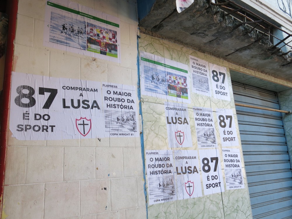 Os cartazes deixados pelos vascaínos lembram a polêmica do título brasileiro de 87, do jogo entre Flamengo e Atlético-MG na Libertadores de 81 (encerrado após diversas expulsões de atletas do Galo pelo árbitro José Roberto Wright) e ainda o rebaixamento da Portuguesa em 2013 (quando o Rubro-Negro também perdeu pontos no tribunal).