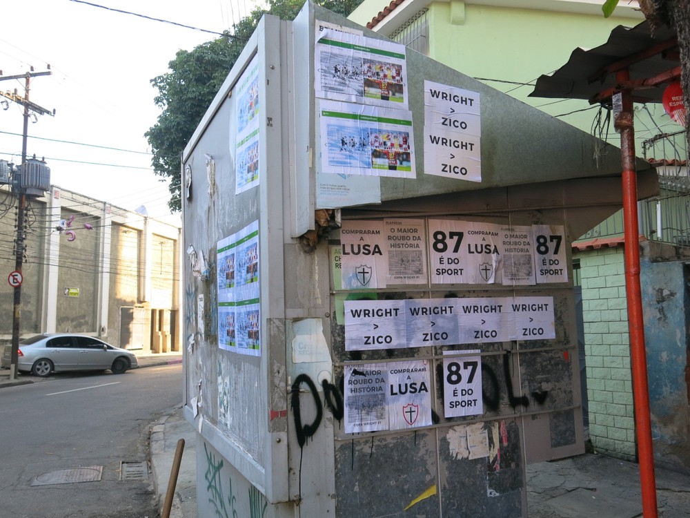 Assim como no clássico diante do Fluminense, em maio, a torcida do Vasco deixou provocações na entrada do setor de visitantes de São Januário horas antes do clássico diante do Flamengo. De forma mais discreta diante do policiamento que já monitora o local, foram colocados cartazes nos postes, muros e em uma banca de jornal próxima à entrada dos visitantes. As equipes se enfrentam neste sábado, às 18h, pelo Campeonato Brasileiro.