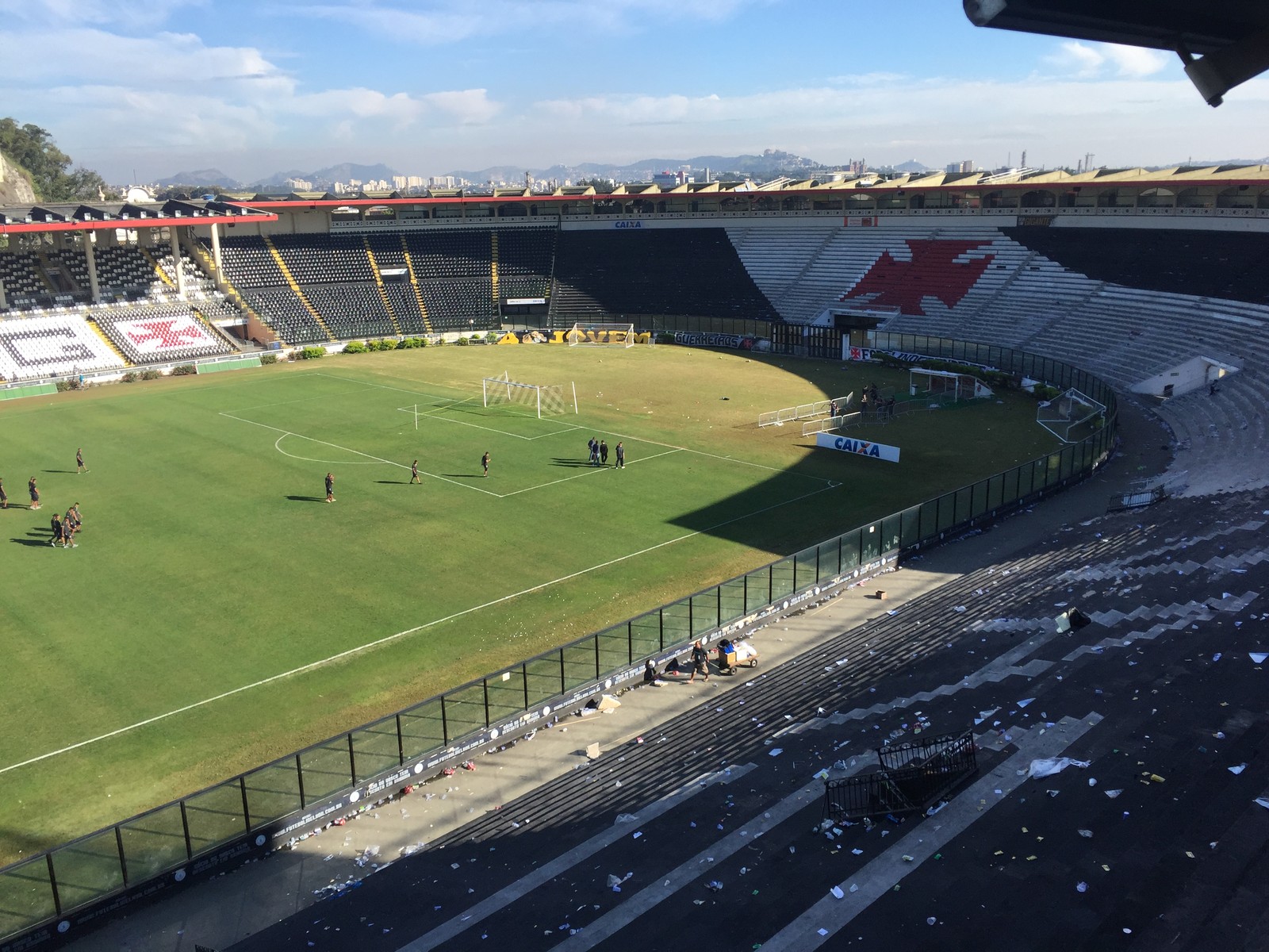 São Januário amanhece com vestígios da confusão e funcionários tentam reparar estragos