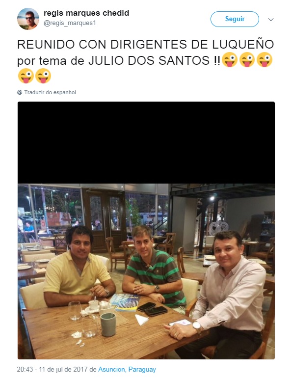 Julio vinha treinando junto com o elenco, mas o Vasco buscava definição para o futuro do jogador, que teve poucas chances com o técnico Milton Mendes. Na noite desta terça-feira, o empresário do volante, Regis Marques, postou uma foto com dirigentes do Luqueño.