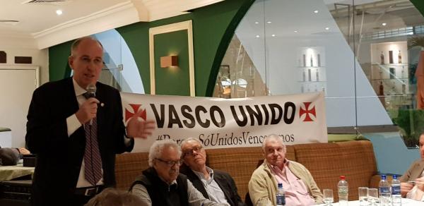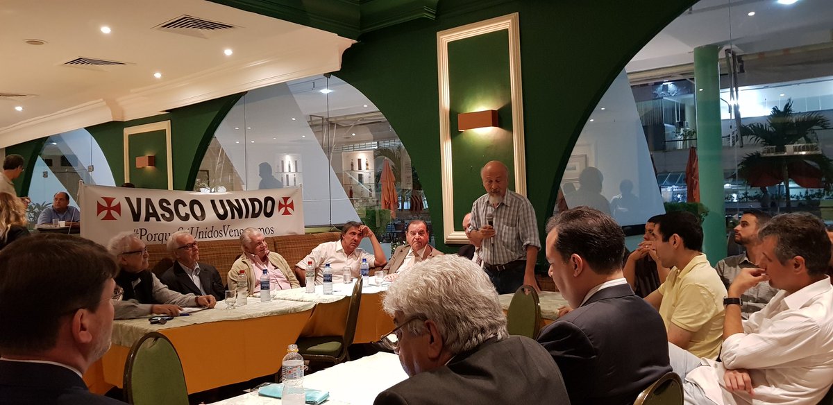 Estamos na reunião da oposição do Vasco, organizada por beneméritos e grandes beneméritos. União das chapas em pauta #lanceVAS