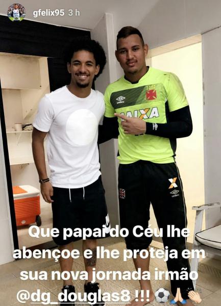 Douglas foi ao clube treinar na manhã desta quinta e já começou a se despedir dos companheiros antes da ida pra Inglaterra. #gevas