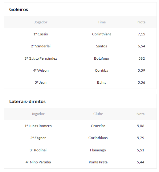 Seleção Prêmio ESPN Bola de Prata Sportingbet 2017 após a 13ª rodada: