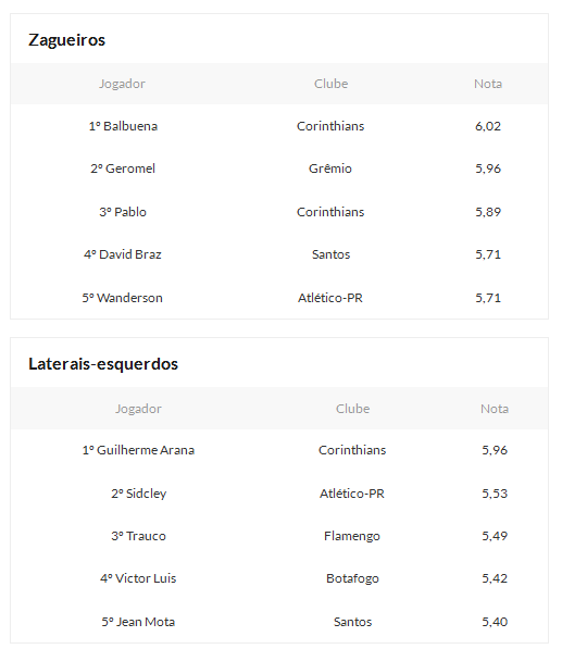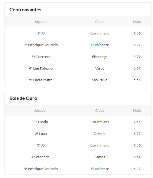 Após os ótimos resultados obtidos pelos dois primeiros colocados, seus jogadores também no 48º Prêmio ESPN Bola de Prata Sportingbet. No Corinthians, o goleiro Cássio, que chegou ao seu sétimo jogo sem sofrer gol, se manteve na liderança geral do prêmio, sendo o Bola de Ouro pela quarta rodada seguida. O lateral esquerdo Guilherme Arana, que marcou um gol e sofreu um pênalti contra o Palmeiras, recebeu uma das maiores notas da rodada (8) e segue isolado na liderança entre os laterais. Outros corintianos que seguem na seleção da Bola de Prata são o zagueiro paraguaio Balbuena e o atacante Jô. Fágner, que era o melhor lateral direito, acabou caindo para a segunda colocação e foi ultrapassado pelo cruzeirense Lucas Romero. O argentino, que marcou um gol contra o Atlético-PR, assumiu o primeiro lugar entre os laterais direitos pela primeira vez no ano.
