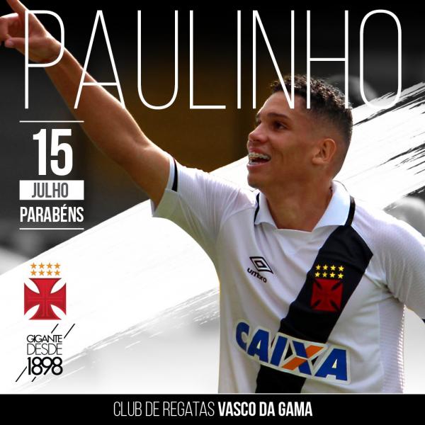 O jogador mais jovem a atuar pelo Vasco no Século 21 completa 17 anos neste sábado. Feliz aniversário, @paulinho_ph00! #RaizÉSerVasco