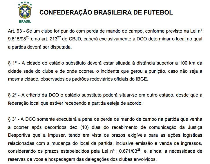 O artigo 63 do Regulamento Geral das Competições 2017 da CBF diz que, em caso de punição, há a possibilidade do jogo ser mandado fora do RJ.