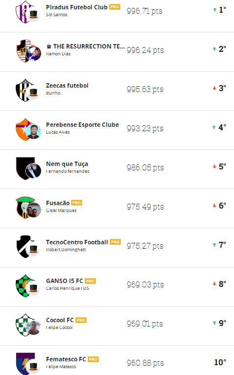 13/06/17 - Cartola FC: Confira a classificação da Liga NETVASCO após a 6ª rodada