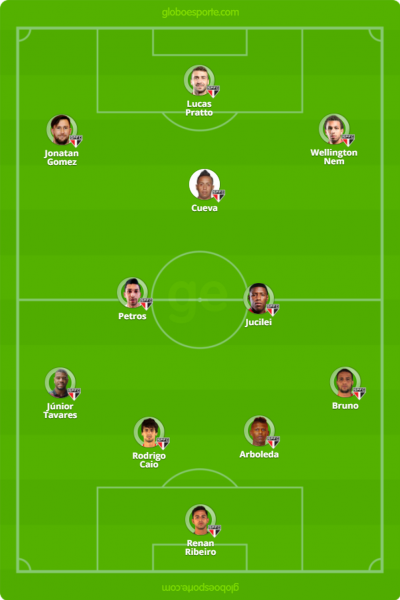 Pendurados: Cícero, Lugano, Junior Tavares, Wellington Nem, Lucas Pratto e Cueva