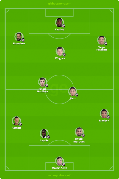 A principal novidade é a entrada de Bruno Paulista no meio, no lugar do suspenso Wellington – outro com passado no Tricolor paulista. Bruno é a aposta para suprir a venda de Douglas, mas vem de longo tempo parado. Se puder acrescentar ofensivamente, poderá ajudar o Vasco a conseguir a segunda vitória seguida fora de casa.