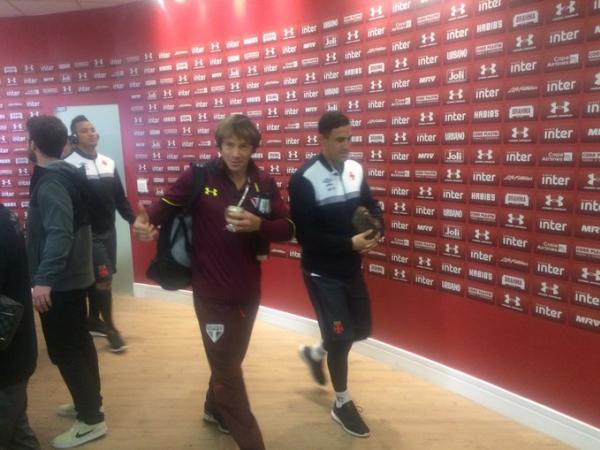 Uruguaios Martín Silva e Lugano se encontraram na chegada ao Morumbi