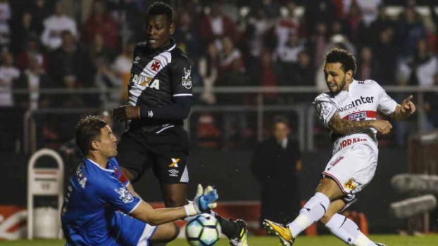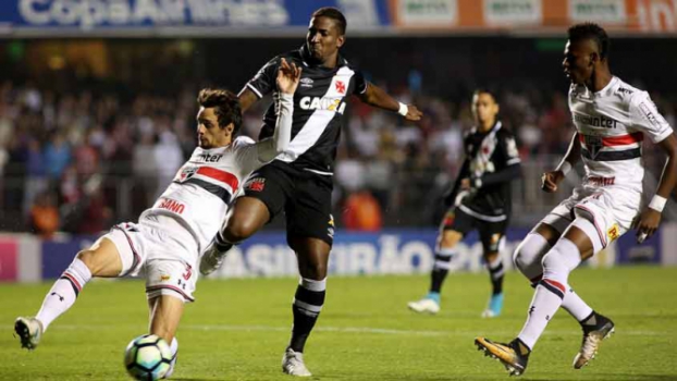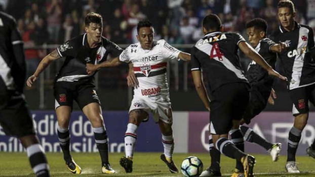 Encurralado pelo São Paulo, o Vasco tinha muitas dificuldades de se aproximar da área tricolor – muito em função da marcação alta imposta pela equipe de Dorival Júnior. Tanto que os cariocas só foram dar o seu primeiro chute a gol aos 20 minutos, quando o volante Bruno Paulista arriscou de longe, obrigando Renan Ribeiro mandar a bola para escanteio.