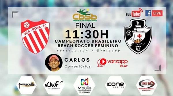 Vasco e Vila Nova-ES decidem o Brasileiro Feminino de Beach Soccer neste domingo a partir das 11h30 em Vitória. Assista ao vivo, em vídeo, clicando aqui ou no player abaixo.