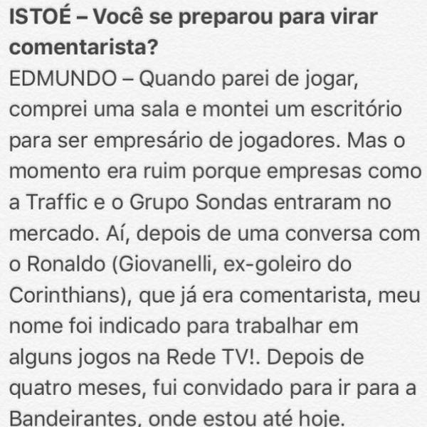 Carlos Leite responde Edmundo citando entrevista dada pelo ex-jogador em 2010