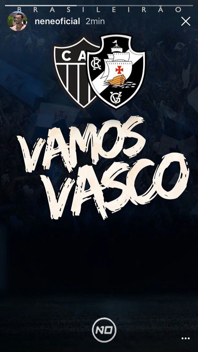 Através de seu Instagram, Nenê postou imagem em referência a partida de logo mais entre Atlético-MG x Vasco.