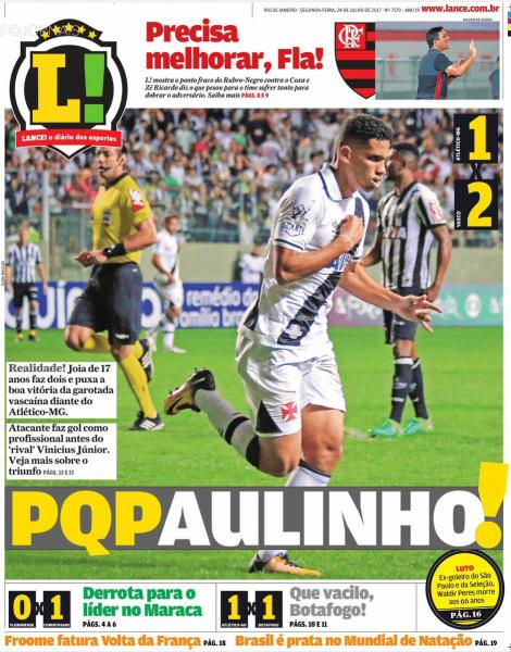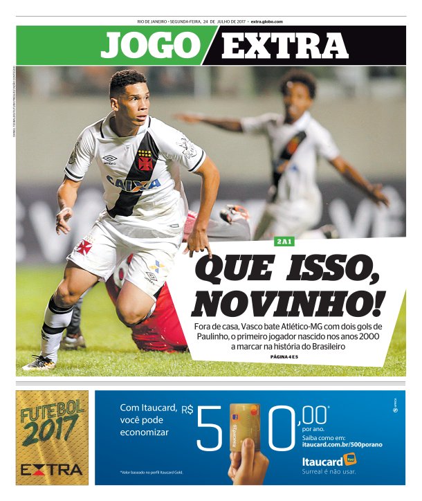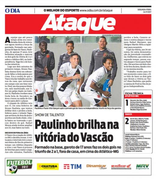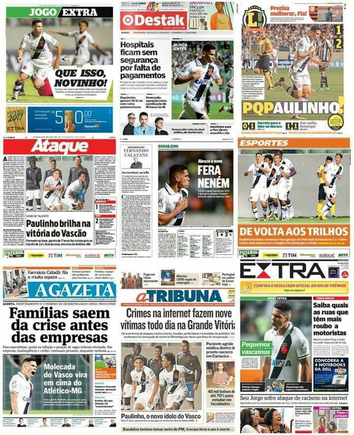Veja como a imprensa carioca destacou a vitória do Vasco sobre o Atlético-MG e o show de Paulinho
