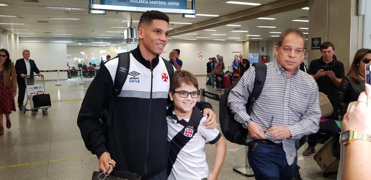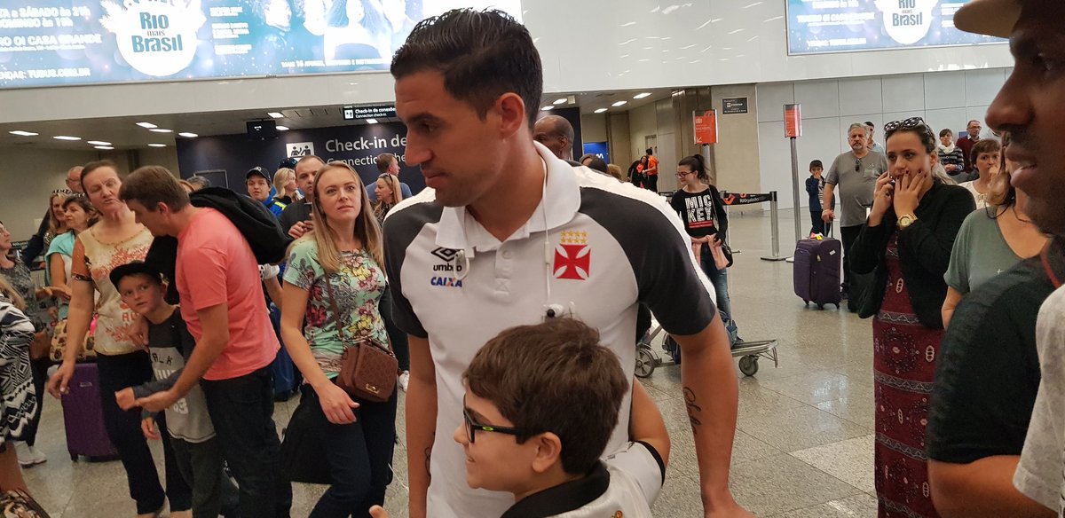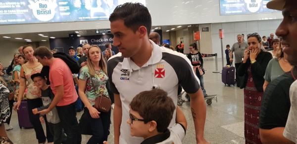 Martín Silva e Paulinho atendem torcedores no desembarque do Vasco