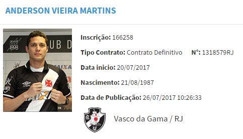 Zagueiro Anderson Martins foi registrado no BID pelo @VascodaGama: