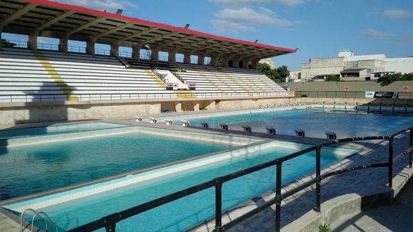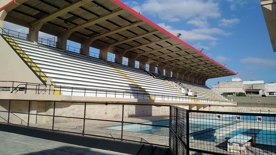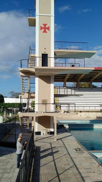 Uma das arquibancadas do parque aquático já foi restaurada; veja fotos