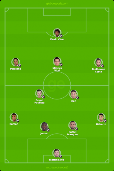 Apesar de satisfeito com o desempenho do time na vitória contra o Galo em Minas, o treinador testou uma mudança na equipe durante o treino de domingo: a entrada de Guilherme, que tem se destacado nas últimas partidas, no lugar de Escudero. Autor dos dois gols em Belo Horizonte na última rodada, o atacante Paulinho, de 17 anos, está confirmado.
