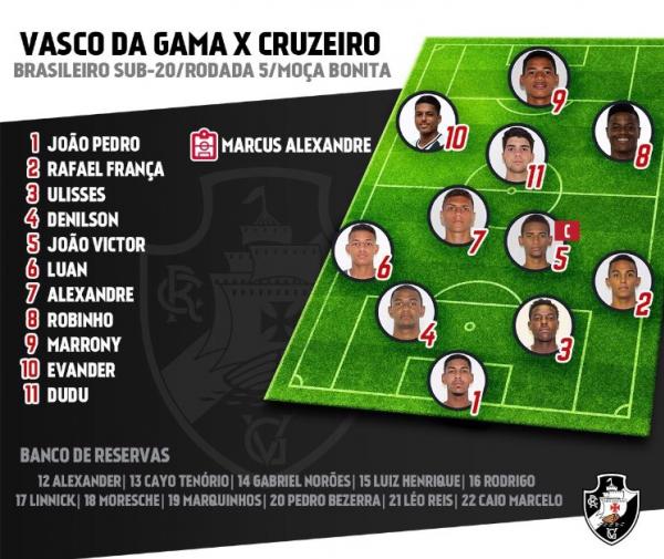 Juniores: Confira a escalação do Vasco para o jogo contra o Cruzeiro