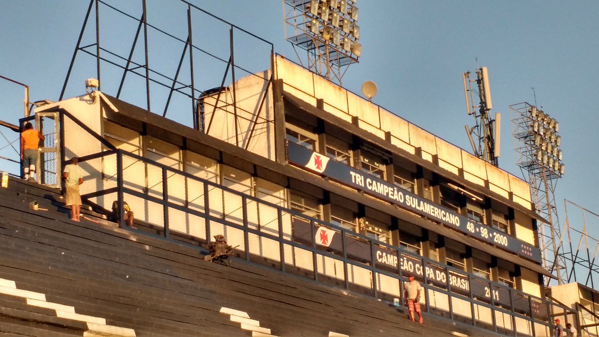 Obra em São Januário para isolar cabines de imprensa está adiantada; veja foto