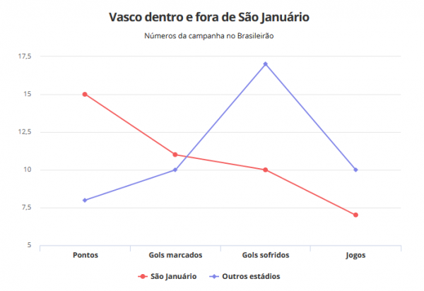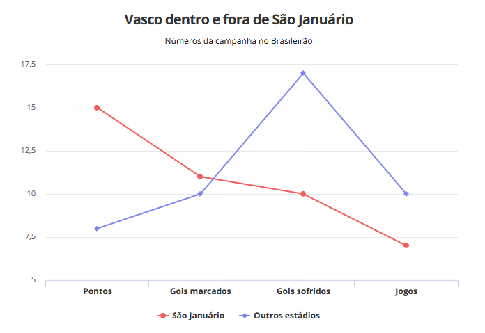 O curioso é que, nas últimas rodadas, o desempenho do Vasco mudou. O time passou a conquistar pontos fora de casa – venceu Atlético-MG e Vitória e empatou com o Coritiba –, mas não foi bem como mandante em outros estádios: perdeu para o Atlético-PR e empatou com o Santos.