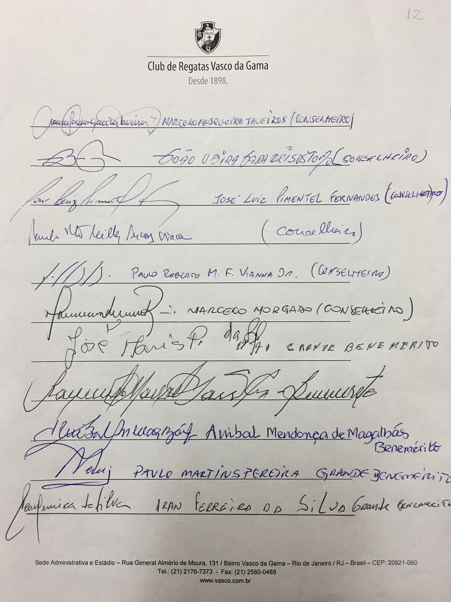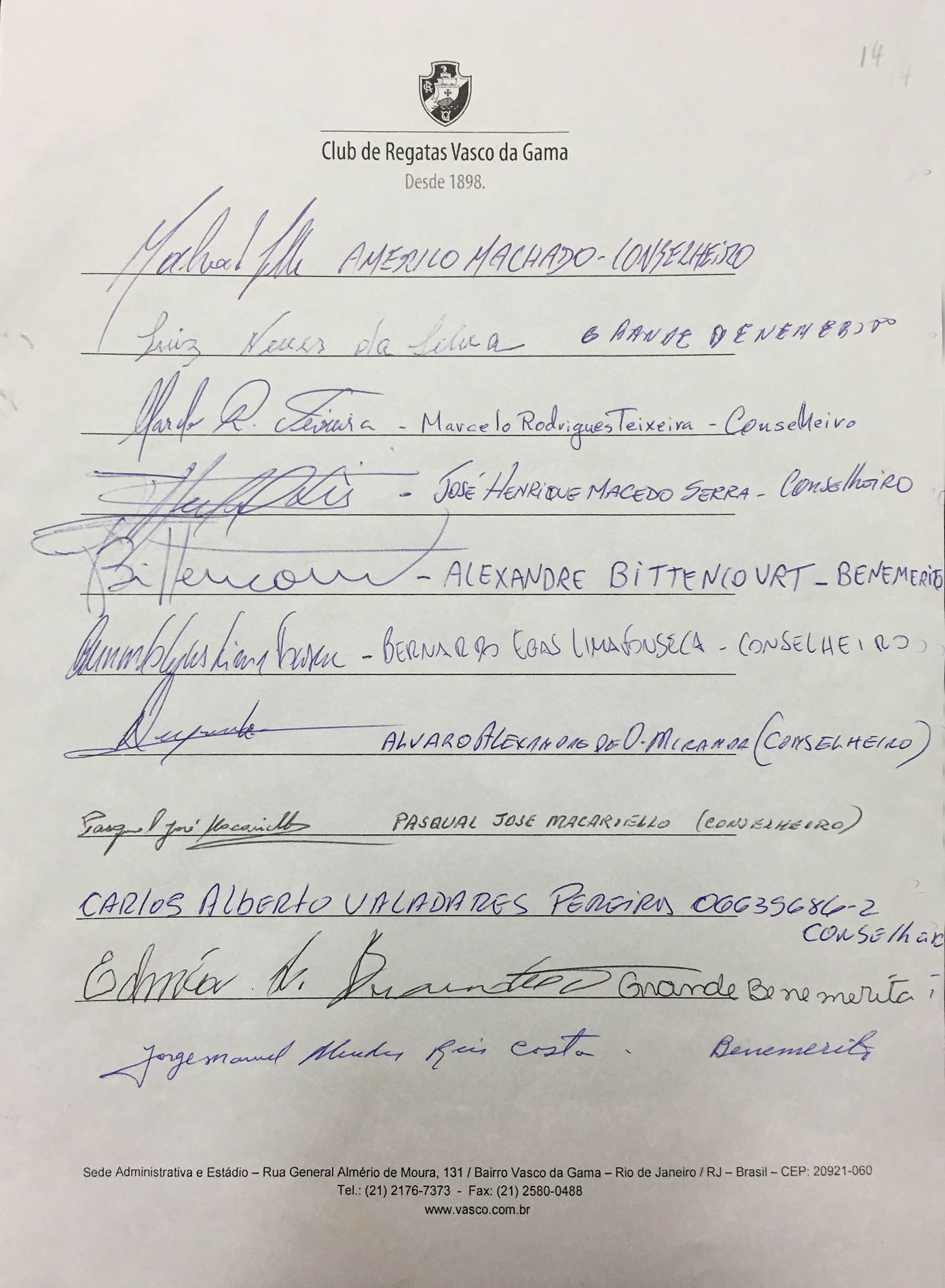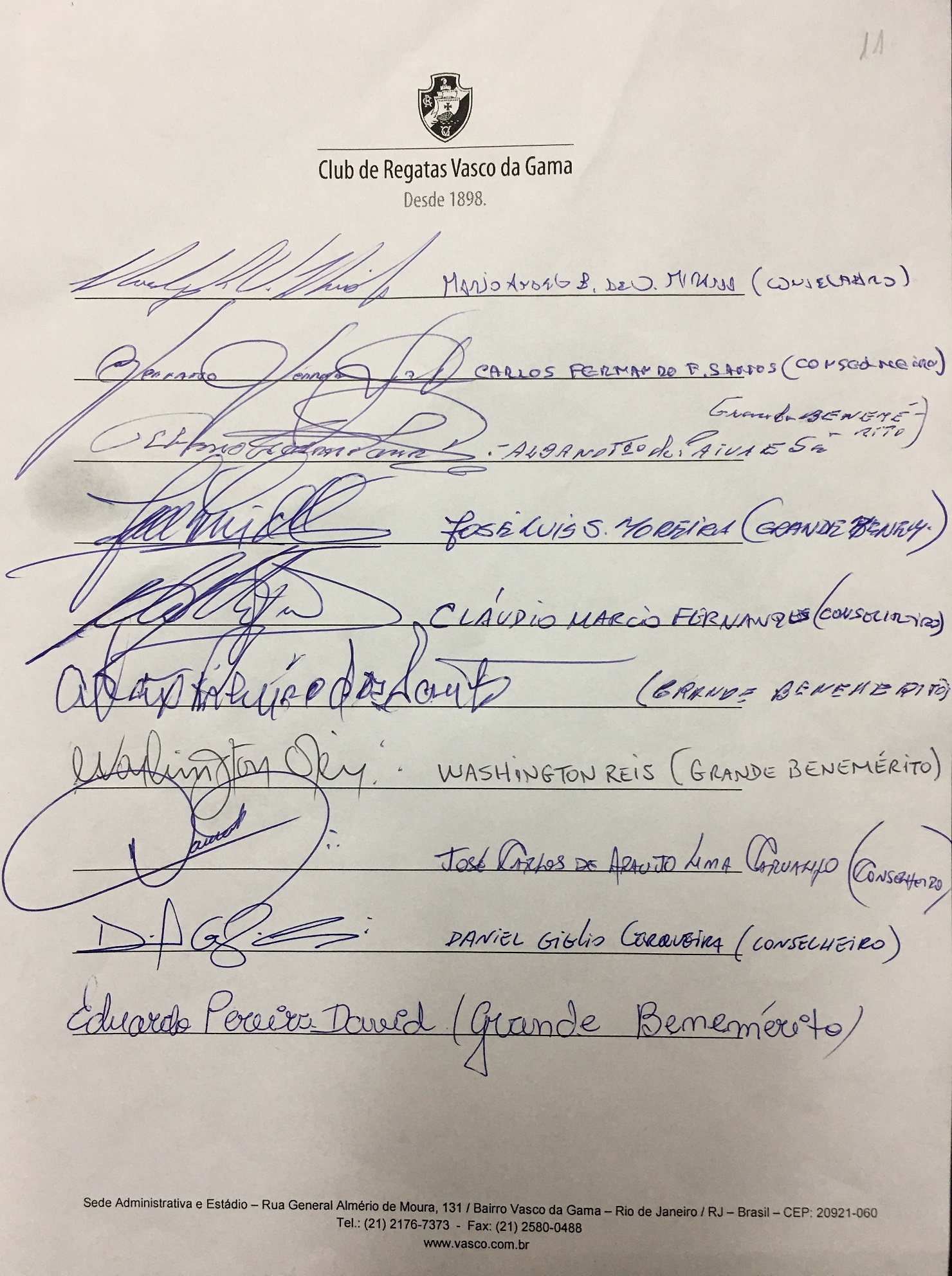 Grandes beneméritos, beneméritos e conselheiros do Vasco divulgam nota em defesa de São Januário; confira