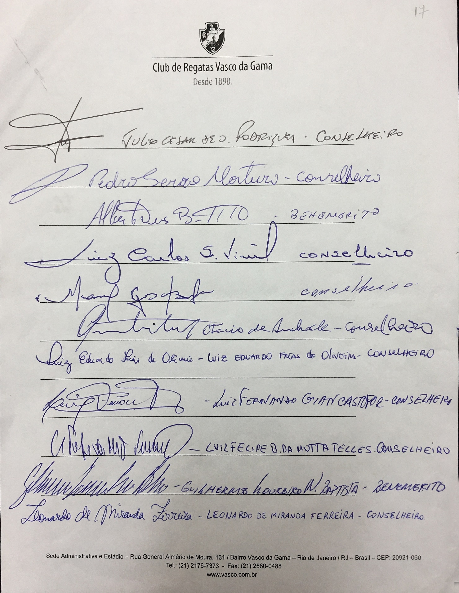 Fonte: Site oficial do Vasco