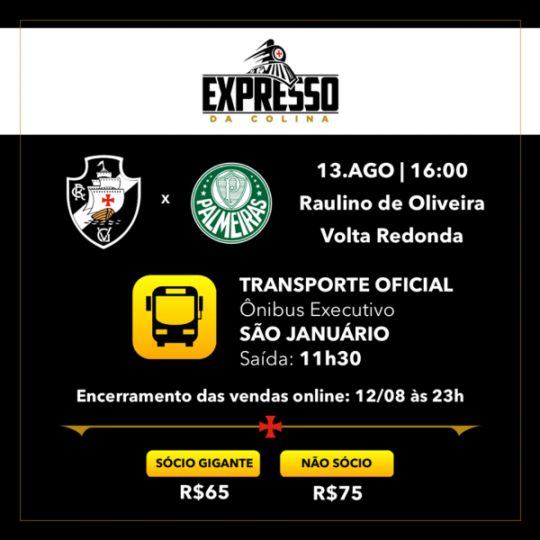 Através da Expresso da Colina, teremos transporte com ônibus executivos para o jogo de domingo, contra o Palmeiras, em Volta Redonda!