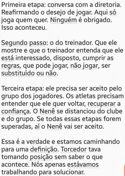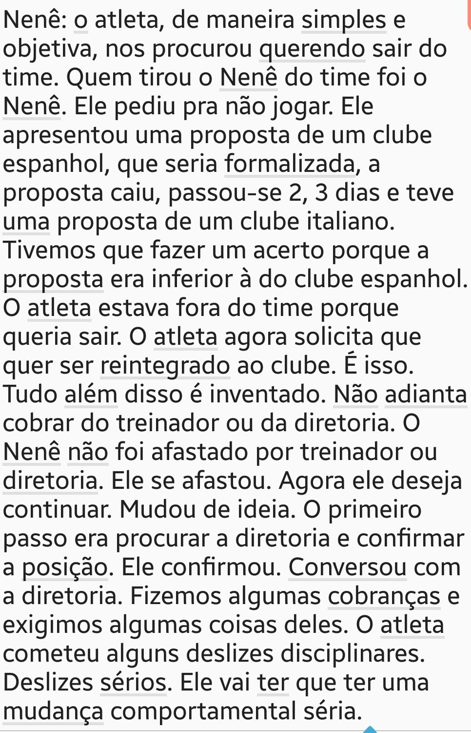 Euriquinho diz que Nenê pediu à diretoria do Vasco para ser reintegrado e precisará agora passar pelo aval de Milton Mendes e do elenco
