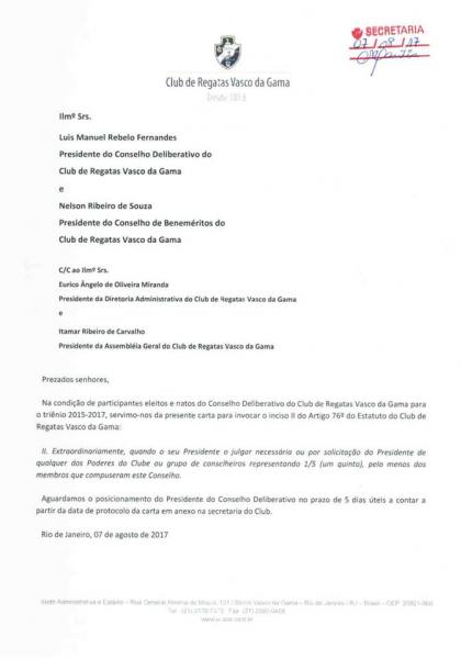 Grupo Ao Vasco Tudo, de Otto Carvalho, divulga nota sobre pedido de cancelamento da reunião do Conselho Deliberativo