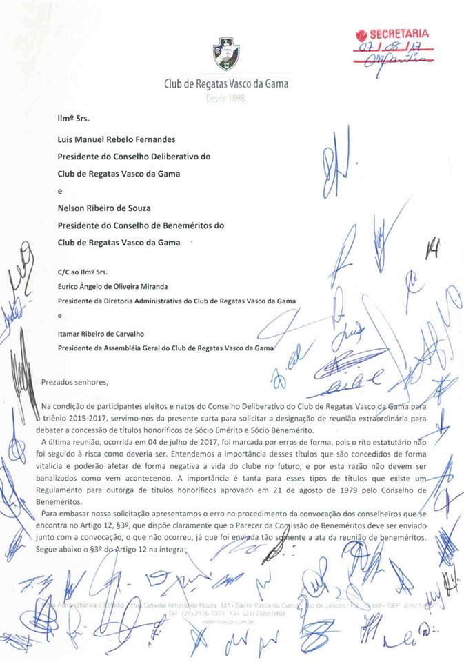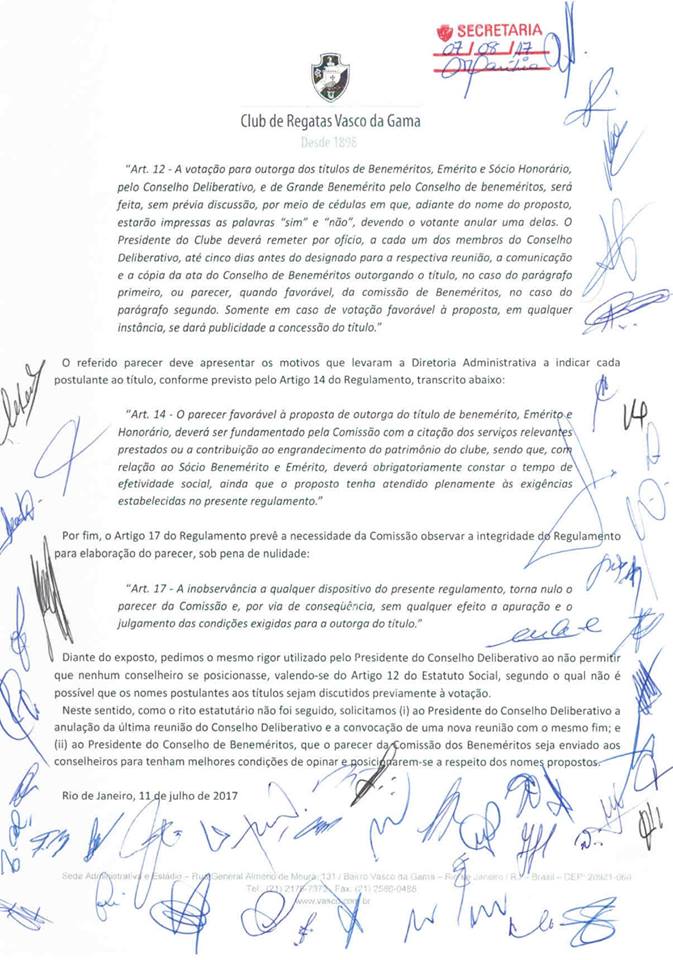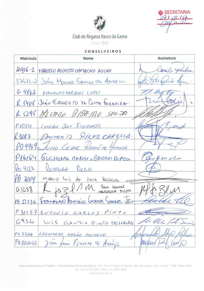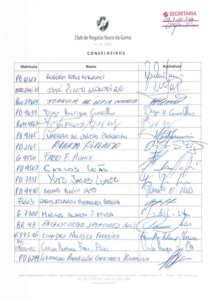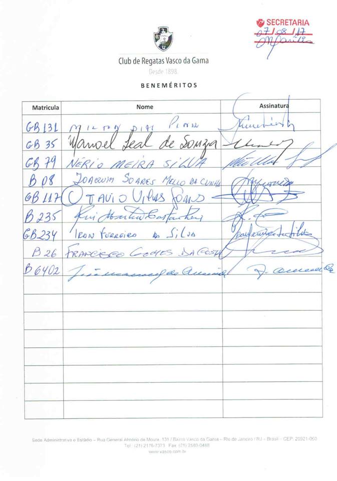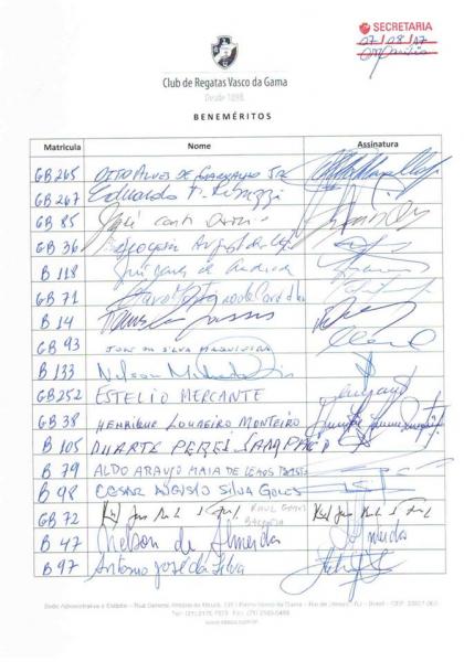 Parabenizamos todos os grupos de oposição por este trabalho em conjunto tendo sido liderado pelo Grande Benemérito Otto Carvalho. Nosso agradecimento em especial aos conselheiros e beneméritos que assinaram a lista.