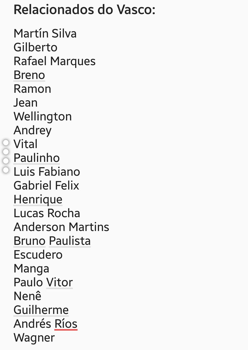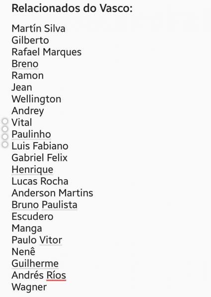 Lista de relacionados do Vasco para a partida contra o Palmeiras, domingo, às 16h, em Volta Redonda, pela 20a rodada do Brasileirão.