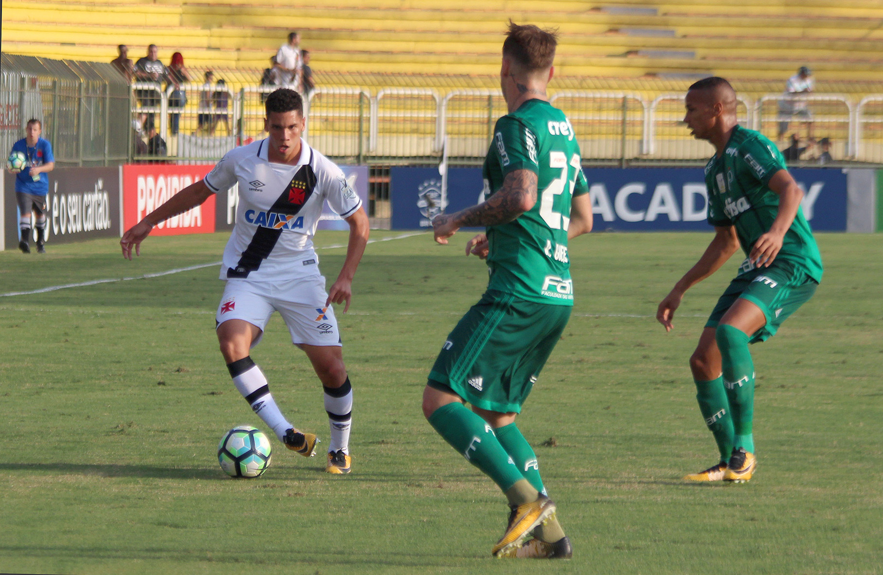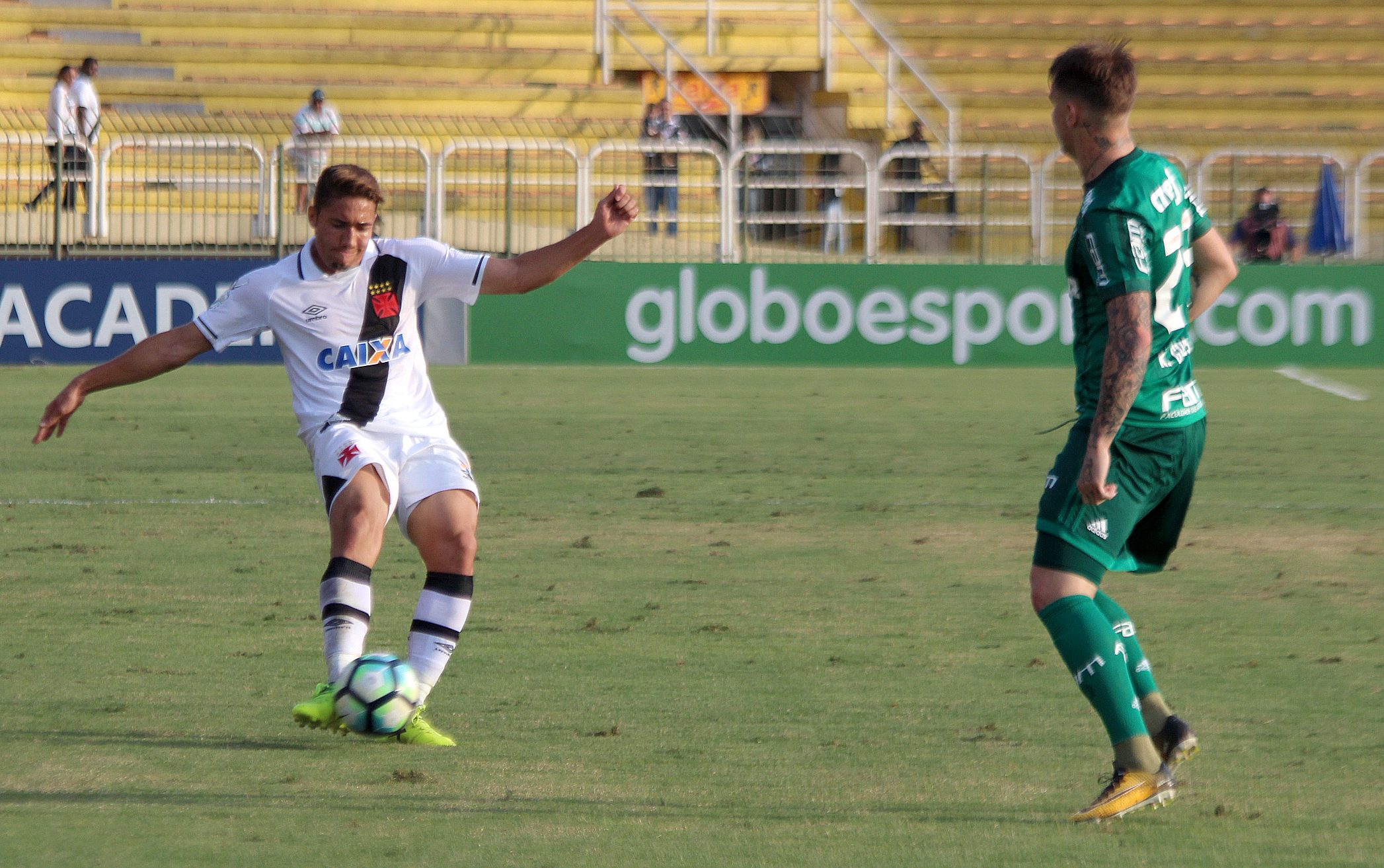 Antes do intervalo, foi a vez de o Vasco perder uma chance incrível. Mateus Vital puxou contra-ataque pela direita e cruzou rasteiro na área. A bola chegou em Paulinho, que poderia bater de primeira, mas preferiu dominar e finalizou em cima de Jean.