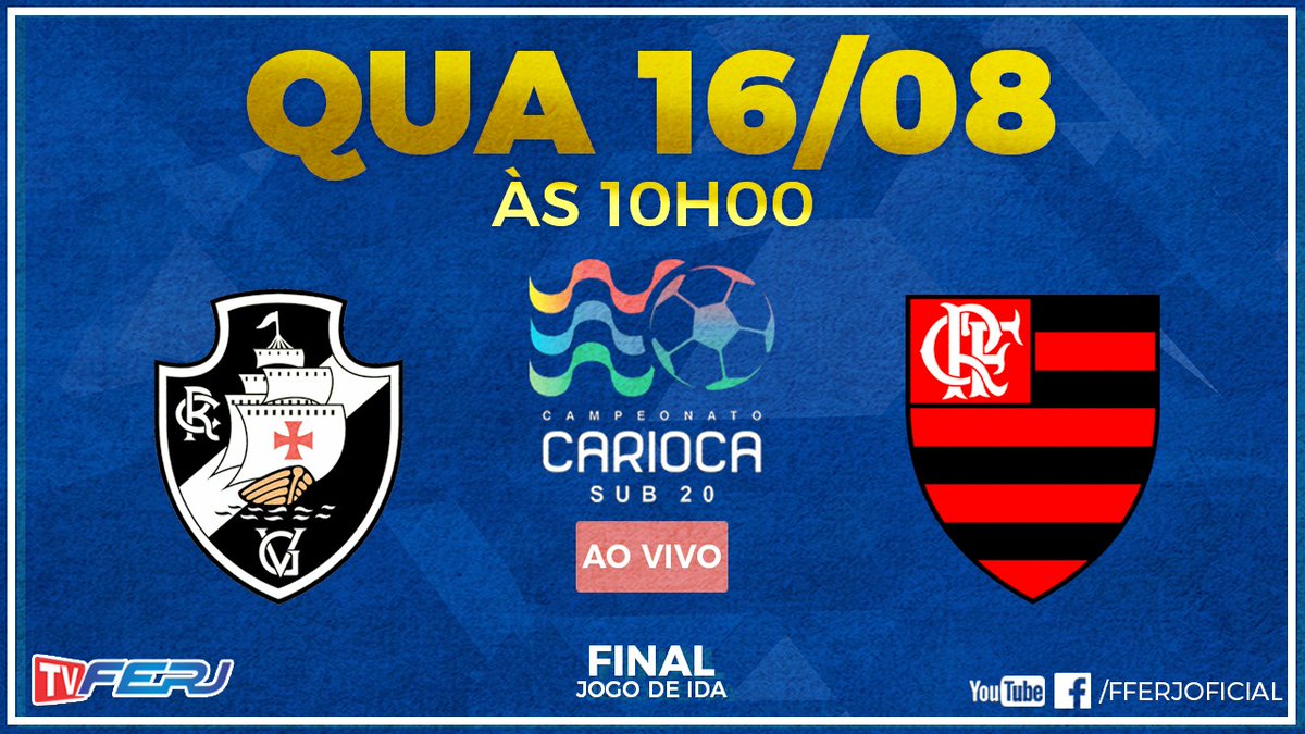 Nesta quarta, a TV @FFERJ transmitirá a final Carioca sub 20 entre @Flamengo X @VascodaGama, 10h. Veja pelo Facebook ou canal no Youtube.