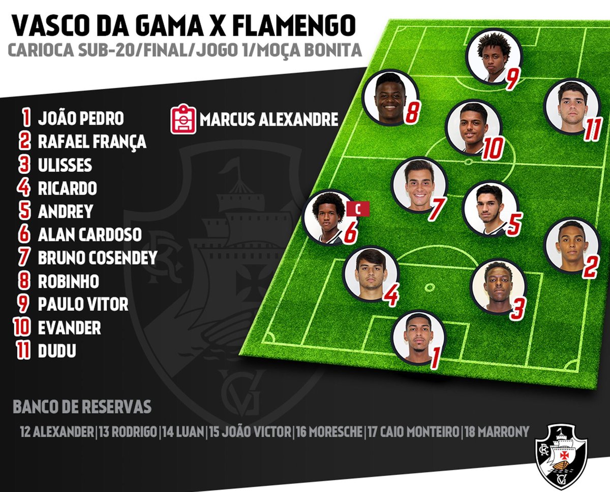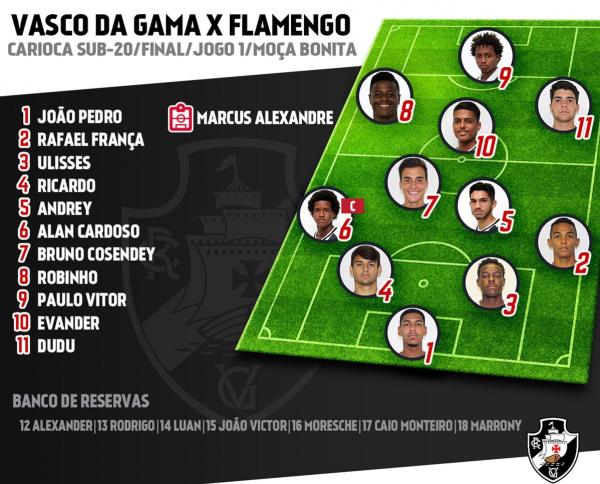 Confira a escalação do Sub-20 para a final entre Vasco e Flamengo: