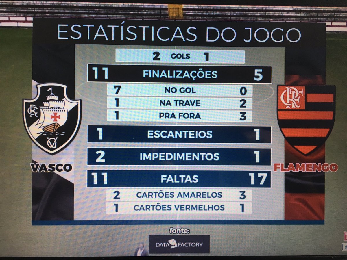 16/08/17 - Juniores: Confira as estatísticas do 1º tempo de Vasco 1 x 1 Urubu