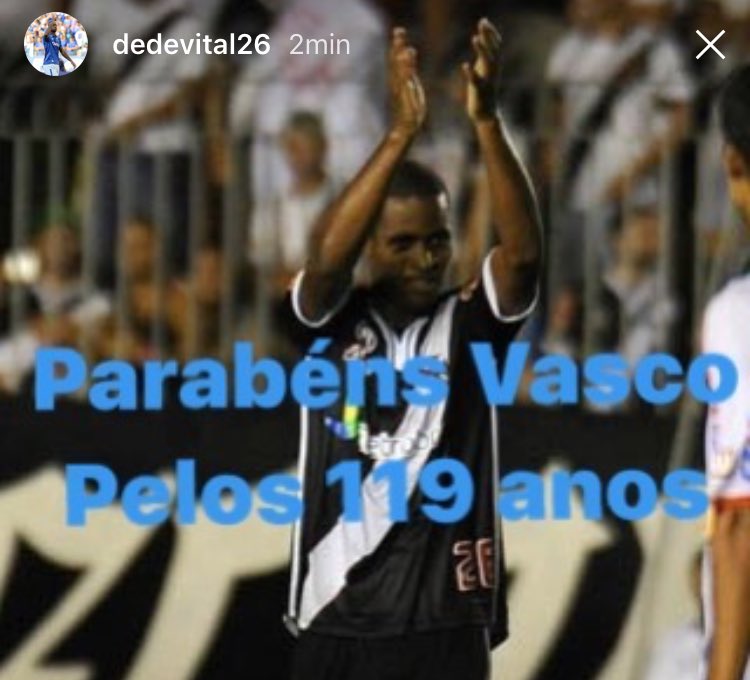 Dedé, ídolo da torcida vascaína, postou em seu Instagram uma imagem desejando parabéns ao clube pelos seus 119 anos. #Vasco119Anos
