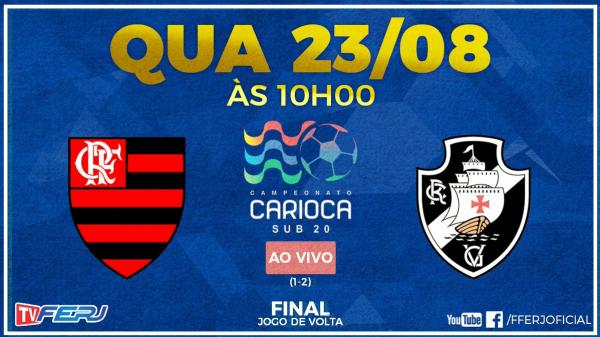 Fique ligado na TV @FFERJ: nesta quarta, 10h, tem @Flamengo x @VascodaGama pela final do Carioca sub 20. Veja pelo Facebook ou YouTube