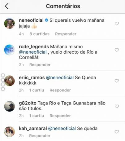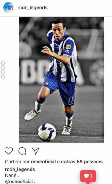 Pelo Instagram, Nenê comentou em uma página do Espanyol, clube que já defendeu: "Se quiserem, eu volto amanhã".